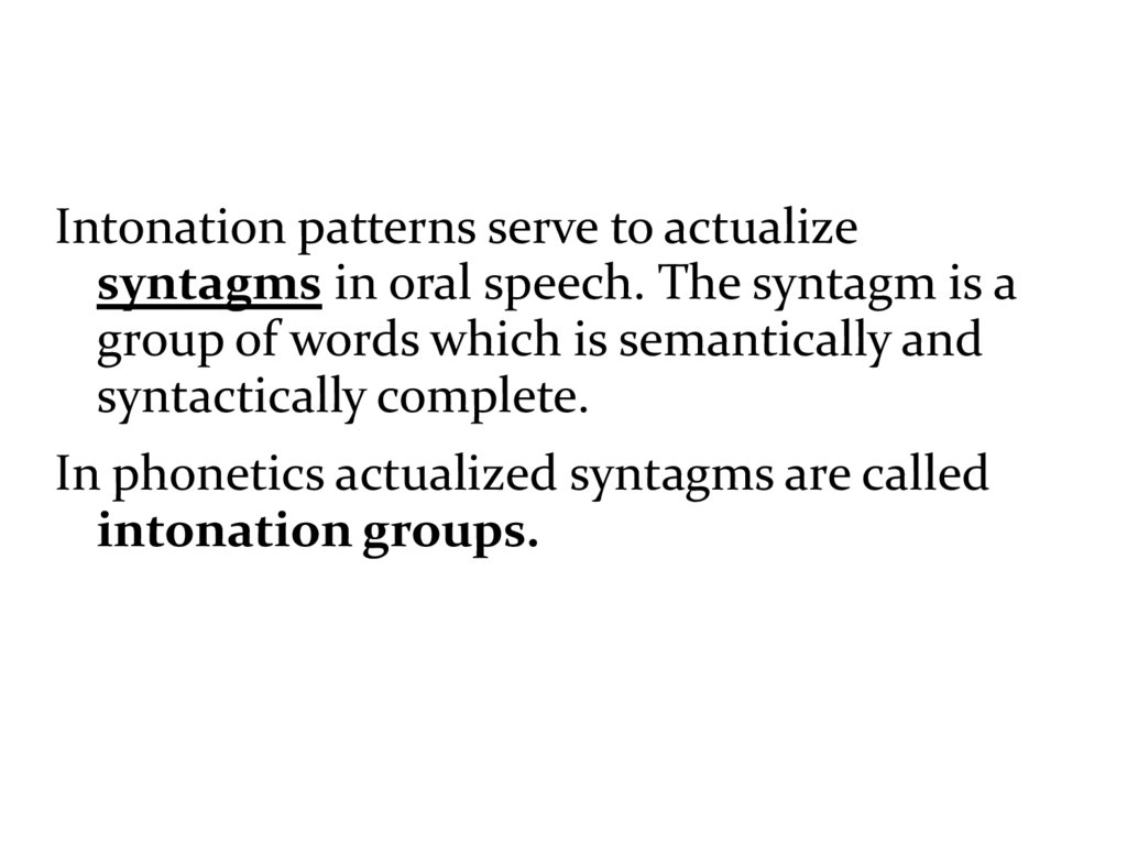 Intonation patterns serve to actualizesyntagms in oral speech. The syntagm is a