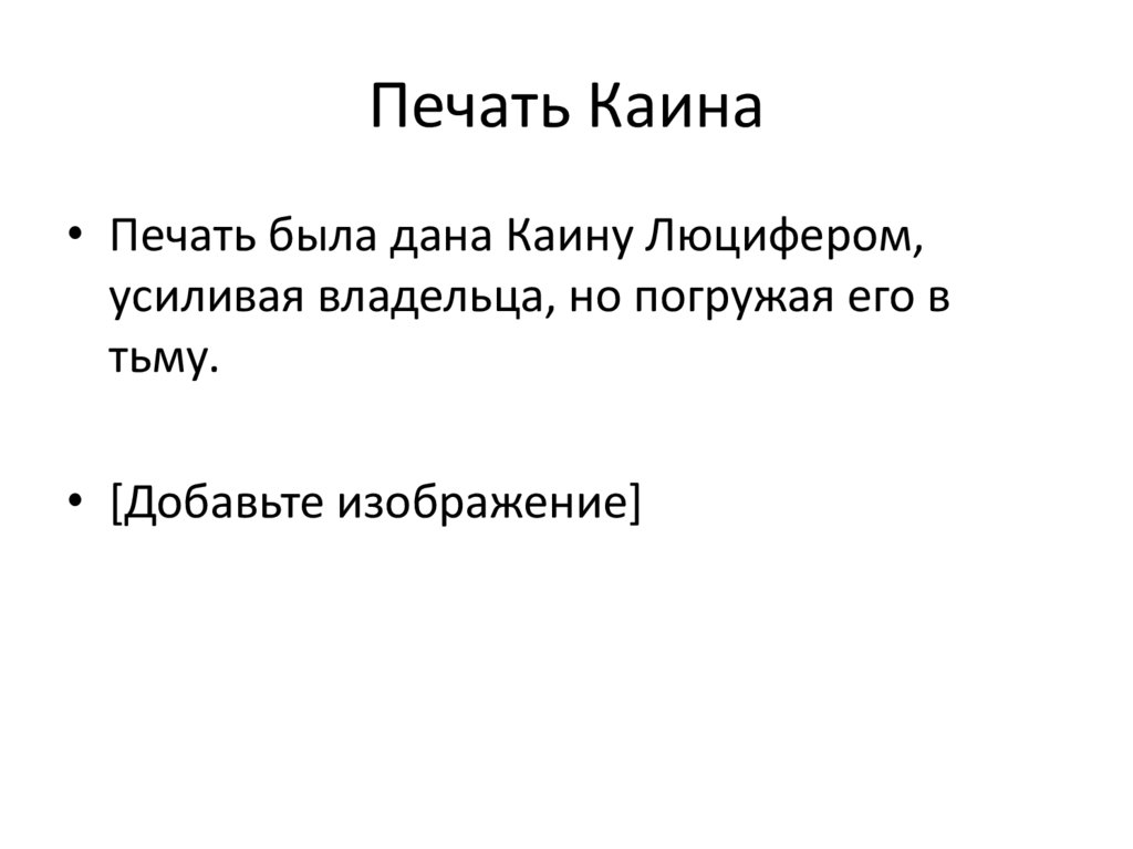 Печать Каина• Печать была дана Каину Люцифером,