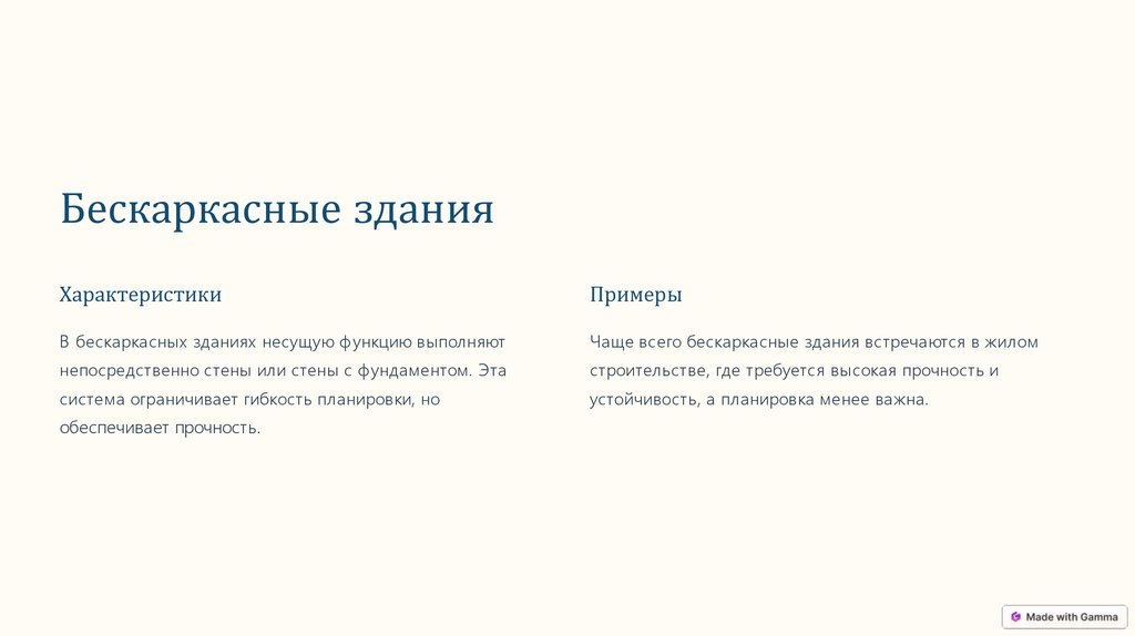 Бескаркасные зданияХарактеристики