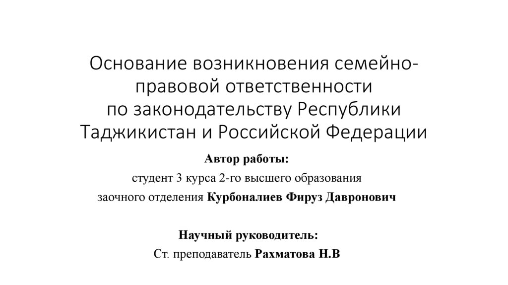 1. Основание возникновения семейно-правовой ответственности по законодательству Республики Таджикистан и Российской Федерации