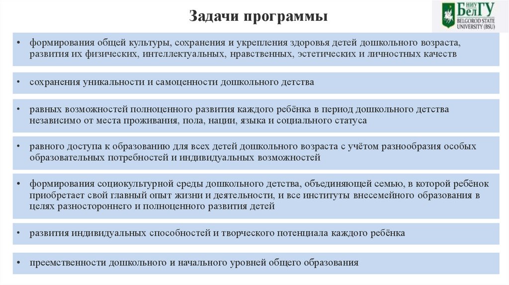 Задачи программы• формирования общей культуры, сохранения и укрепления здоровья детей дошкольного возраста,