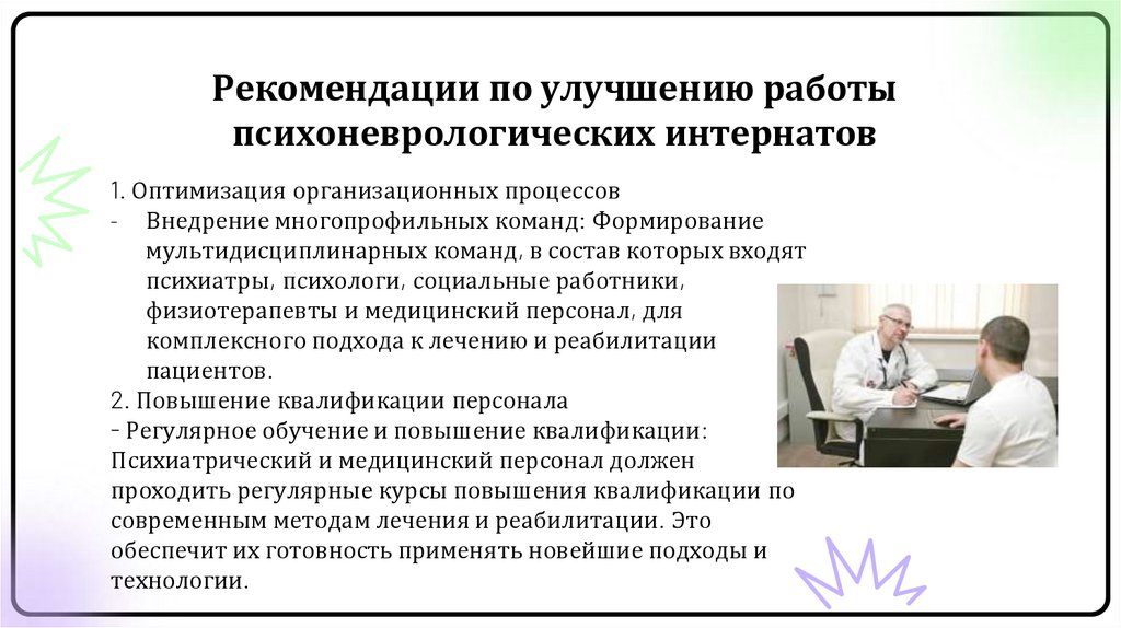 9. Рекомендации по улучшению работы психоневрологических интернатов