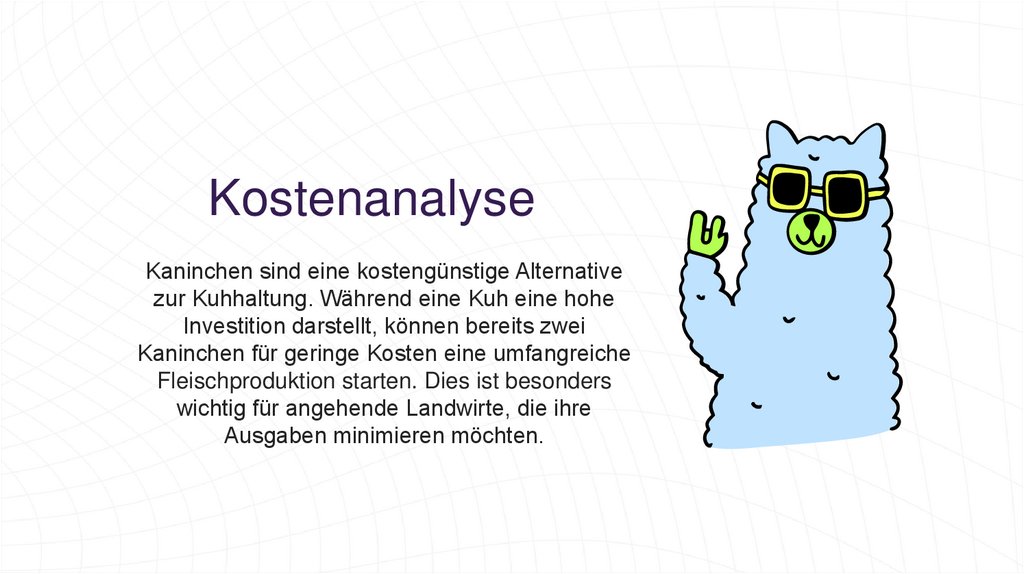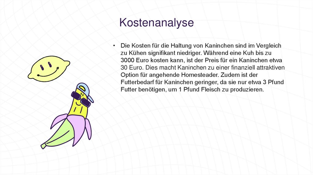 Kostenanalyse• Die Kosten für die Haltung von Kaninchen sind im Vergleich