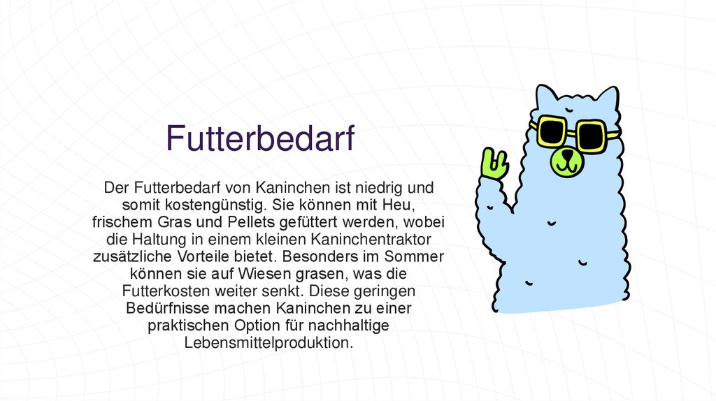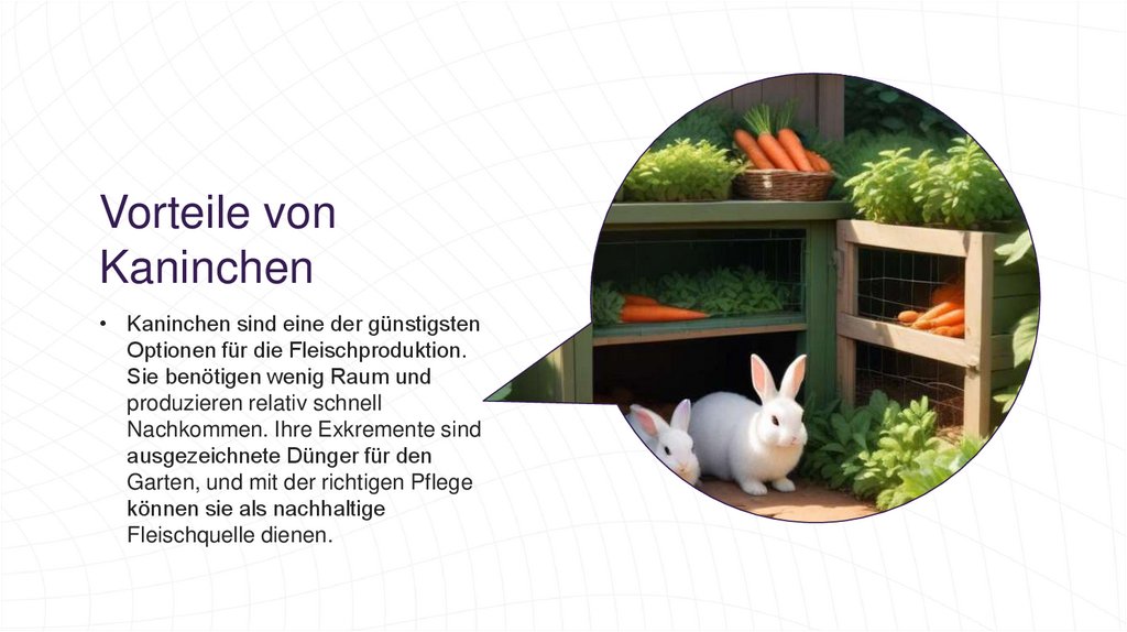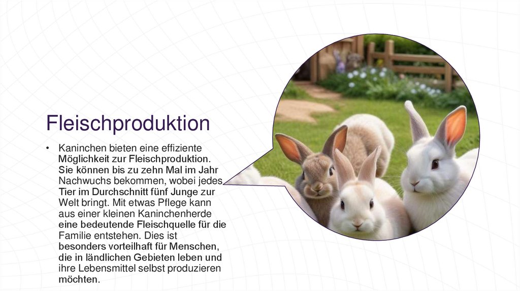 Fleischproduktion• Kaninchen bieten eine effiziente