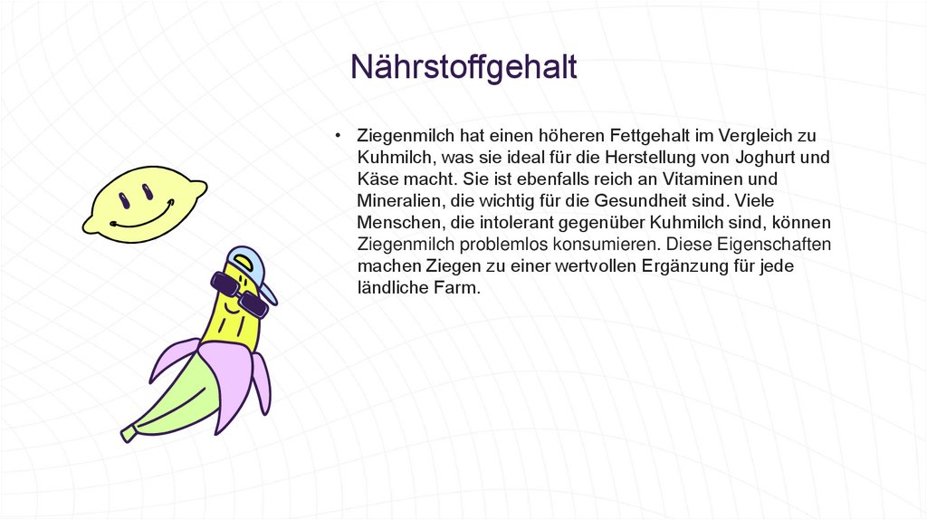 Nährstoffgehalt• Ziegenmilch hat einen höheren Fettgehalt im Vergleich zu