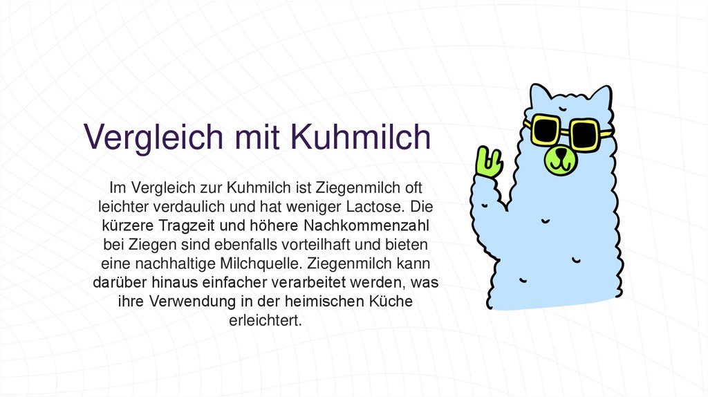 Vergleich mit KuhmilchIm Vergleich zur Kuhmilch ist Ziegenmilch oft