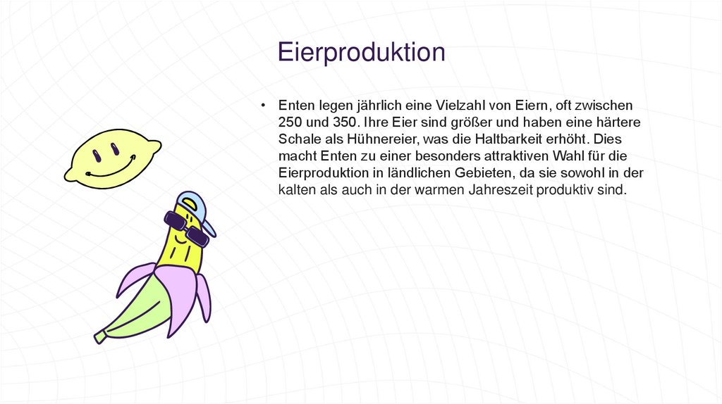 Eierproduktion• Enten legen jährlich eine Vielzahl von Eiern, oft zwischen