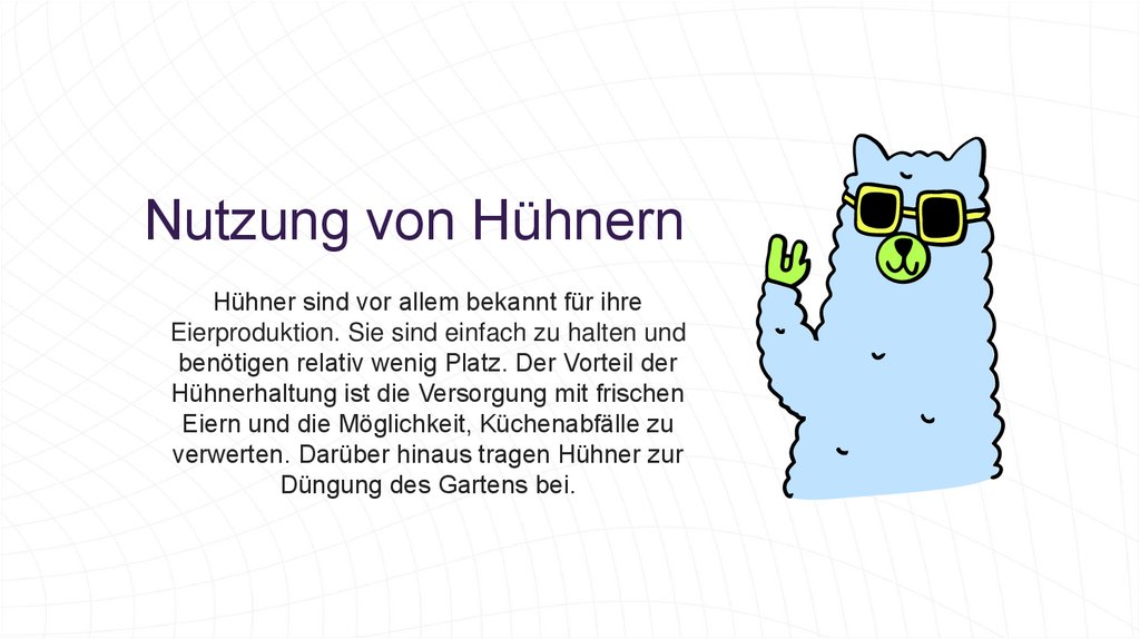 Nutzung von HühnernHühner sind vor allem bekannt für ihre