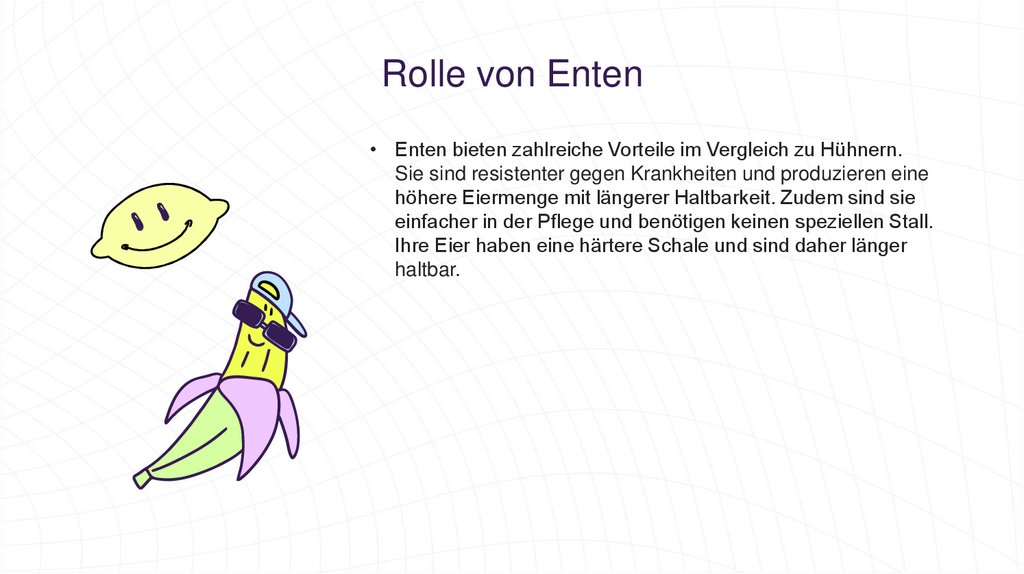 Rolle von Enten• Enten bieten zahlreiche Vorteile im Vergleich zu Hühnern.