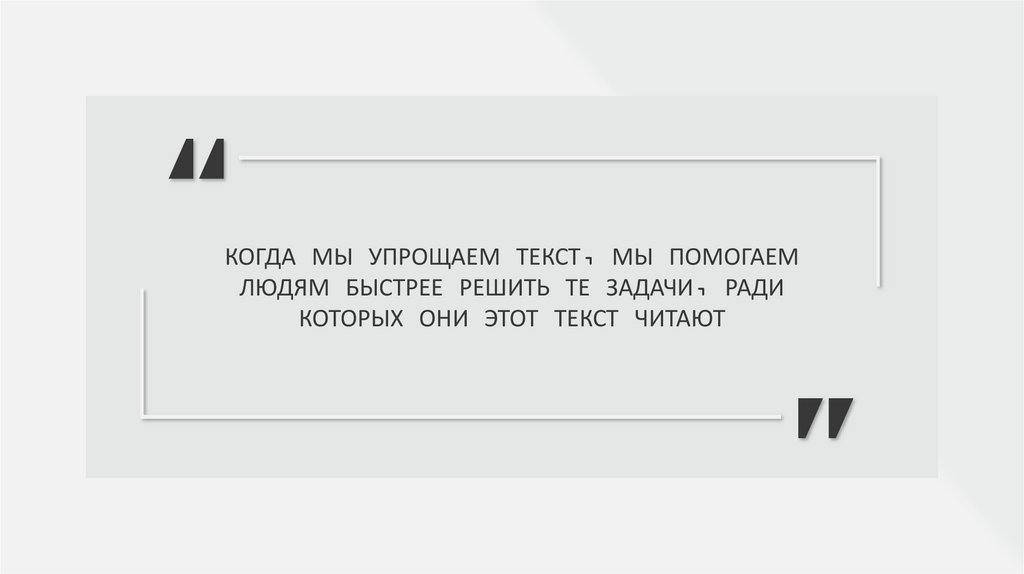 КОГДА МЫ УПРОЩАЕМ ТЕКСТ, МЫ ПОМОГАЕМЛЮДЯМ БЫСТРЕЕ РЕШИТЬ ТЕ ЗАДАЧИ, РАДИ