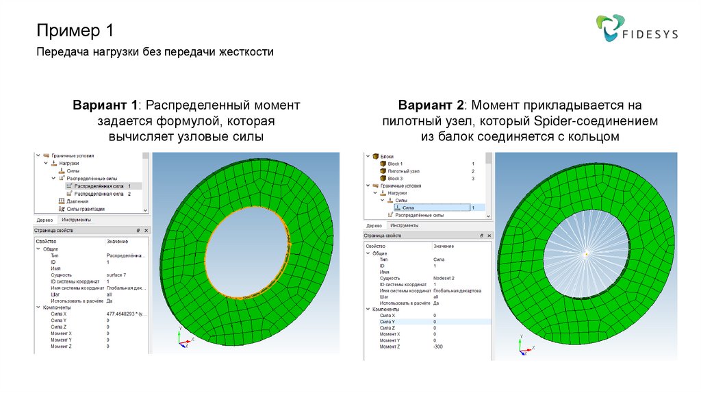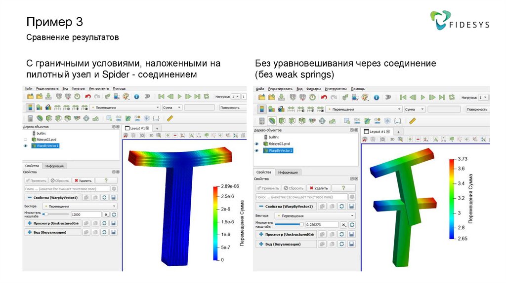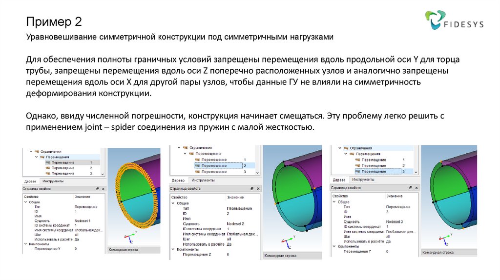 перемещения вдоль оси X для другой пары узлов, чтобы данные ГУ не влияли на симметричность
