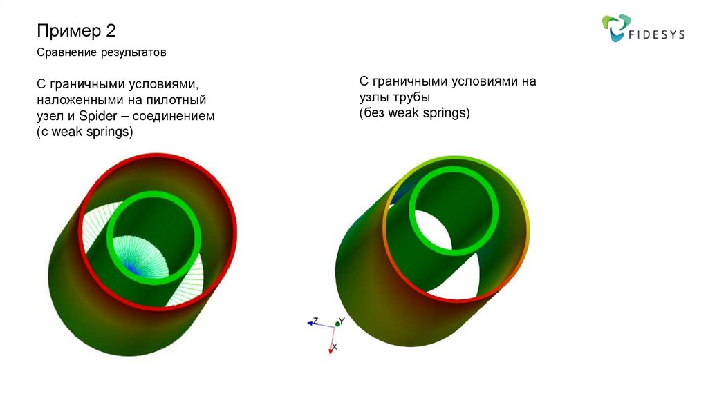 трубы, запрещены перемещения вдоль оси Z поперечно расположенных узлов и аналогично запрещены