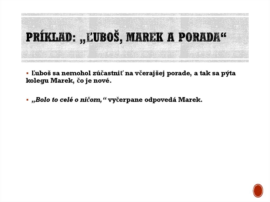 Marek sa po skončení prezentáciePRÍKLAD: