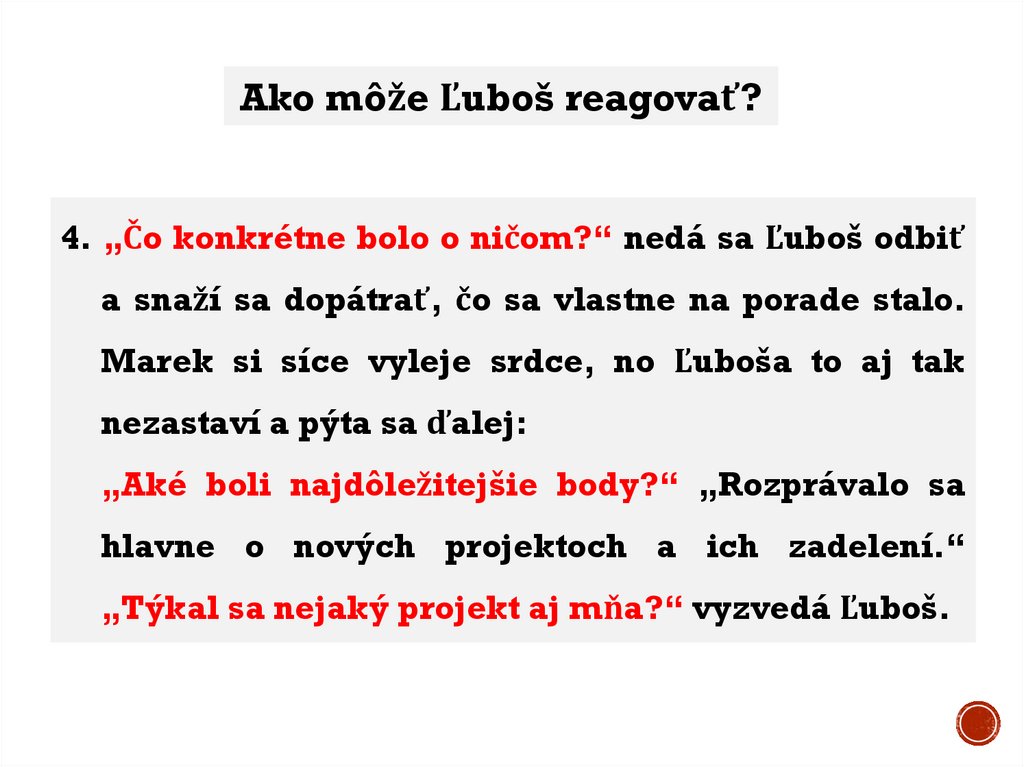 Ako môže Ľuboš reagovať?4. „Čo konkrétne bolo o ničom?“ nedá sa Ľuboš odbiť