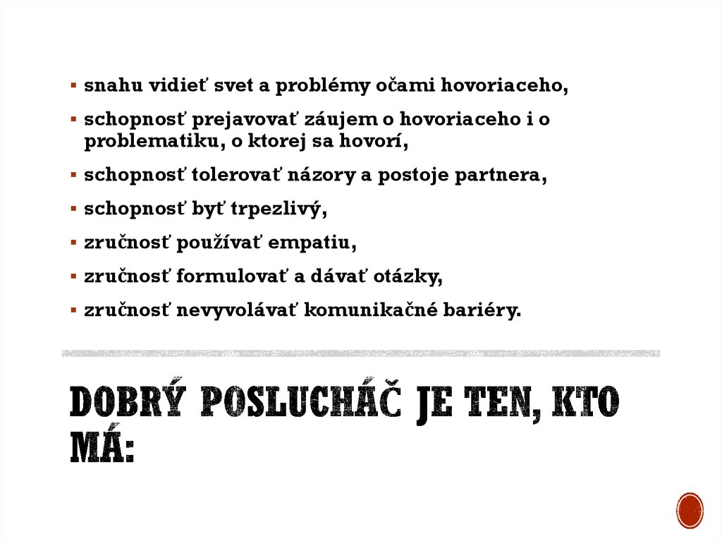snahu vidieť svet a problémy očami hovoriaceho,schopnosť prejavovať záujem o hovoriaceho i o