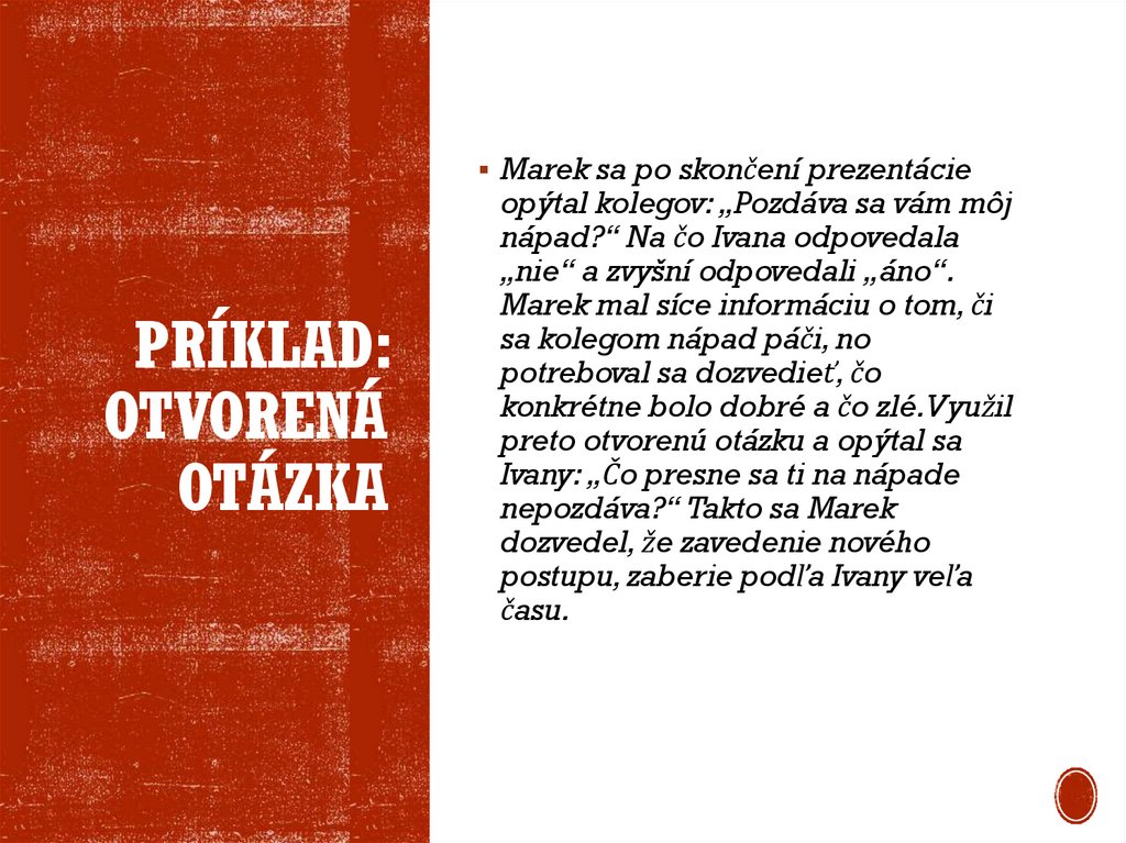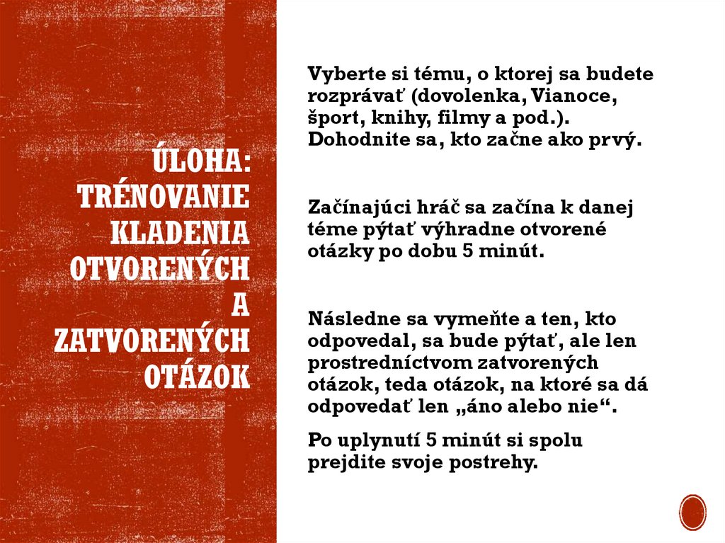 26. Úloha: Trénovanie kladenia otvorených a zatvorených otázok