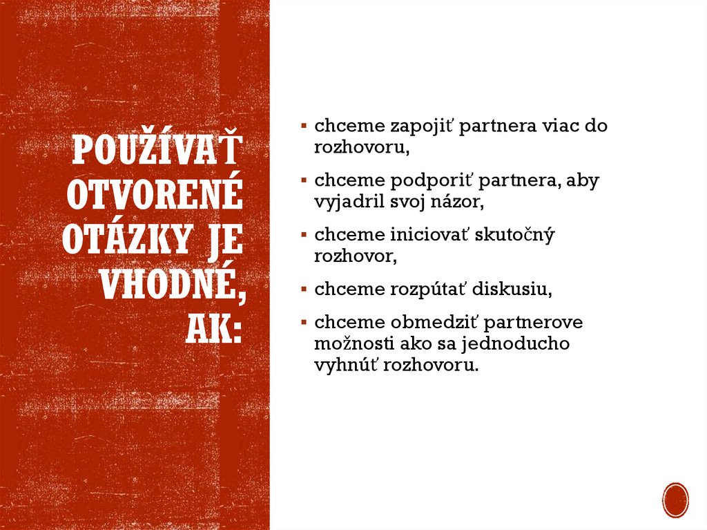 6. Používať otvorené otázky je vhodné, ak: