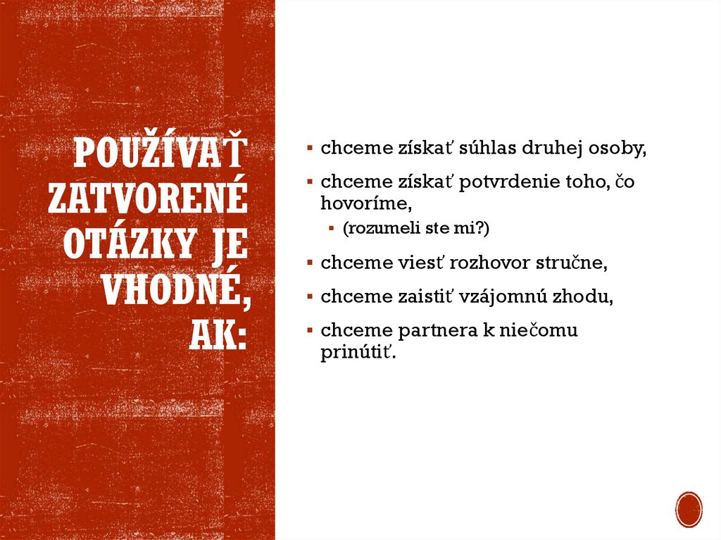 8. Používať zatvorené otázky je vhodné, ak: