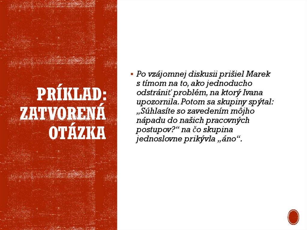 jednoduchým „áno alebo nie“, zároveň nabáda opýtaného k
