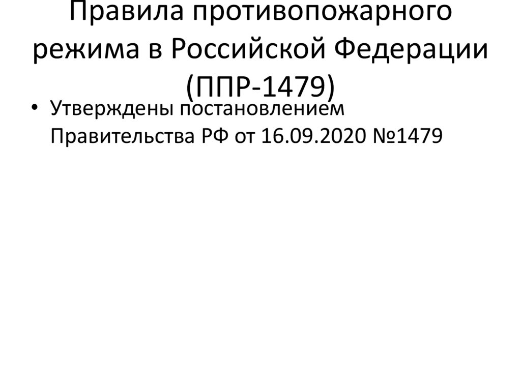 Правила противопожарного режима в Российской Федерации (ППР-1479)