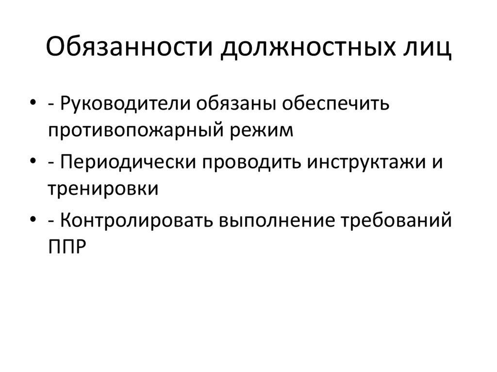 Обязанности должностных лиц• - Руководители обязаны обеспечить