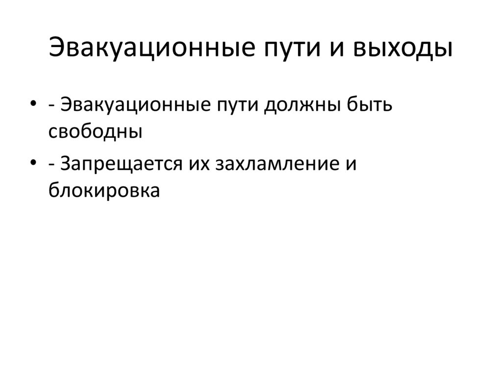 Эвакуационные пути и выходы• - Эвакуационные пути должны быть