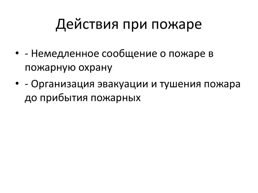 Действия при пожаре• - Немедленное сообщение о пожаре в