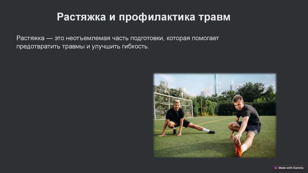 Растяжка и профилактика травмРастяжка — это неотъемлемая часть подготовки, которая помогает