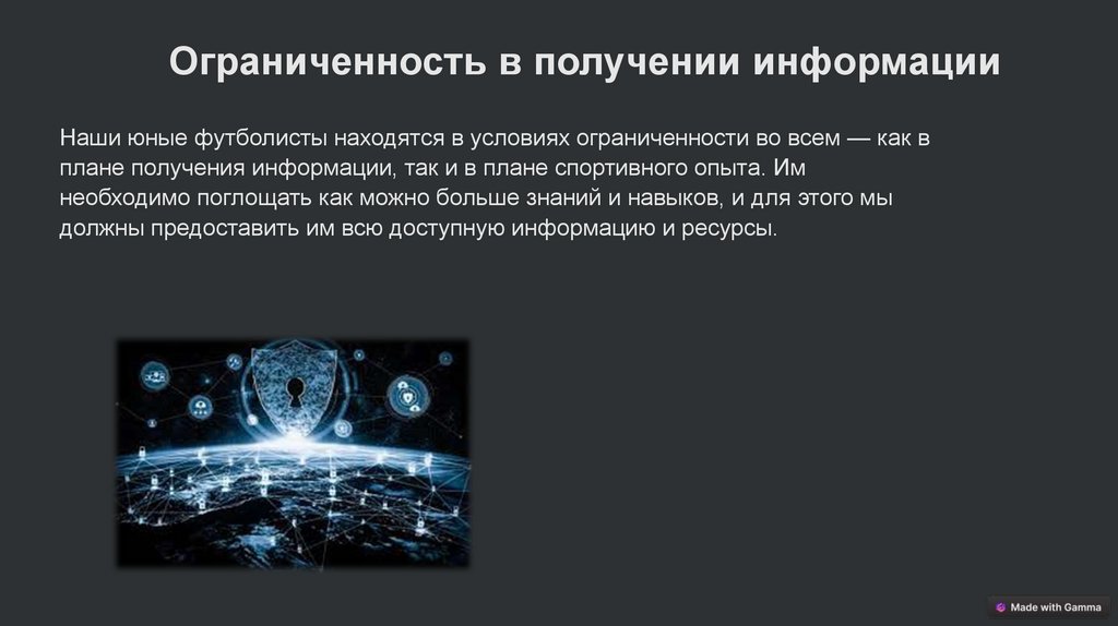 Ограниченность в получении информацииНаши юные футболисты находятся в условиях ограниченности во всем — как в
