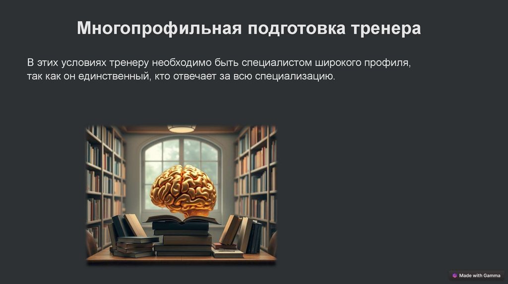 Многопрофильная подготовка тренераВ этих условиях тренеру необходимо быть специалистом широкого профиля,