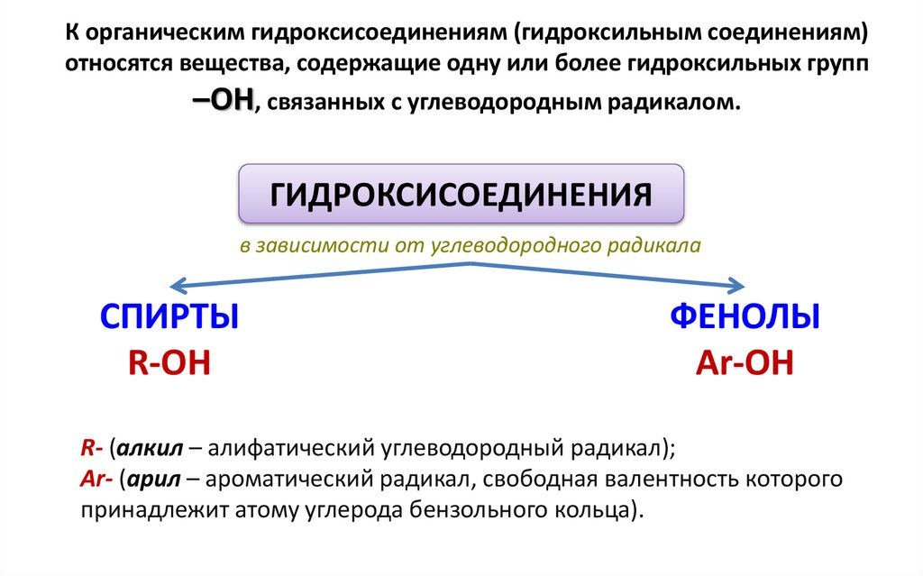 К органическим гидроксисоединениям (гидроксильным соединениям)относятся вещества, содержащие одну или более гидроксильных групп