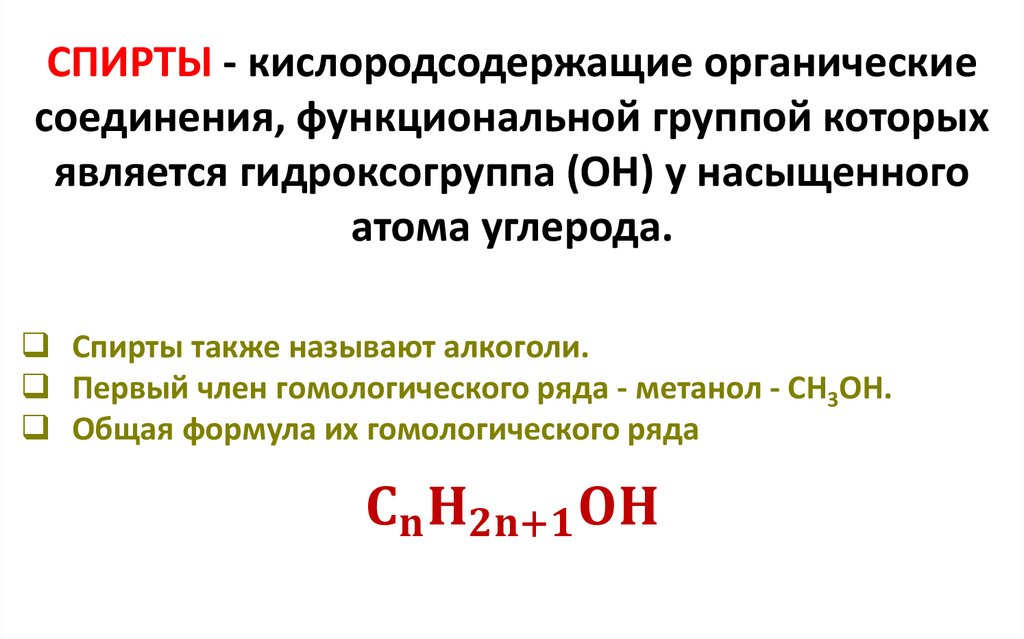 СПИРТЫ - кислородсодержащие органическиесоединения, функциональной группой которых