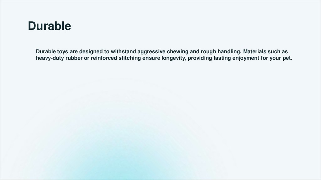 DurableDurable toys are designed to withstand aggressive chewing and rough handling. Materials such as