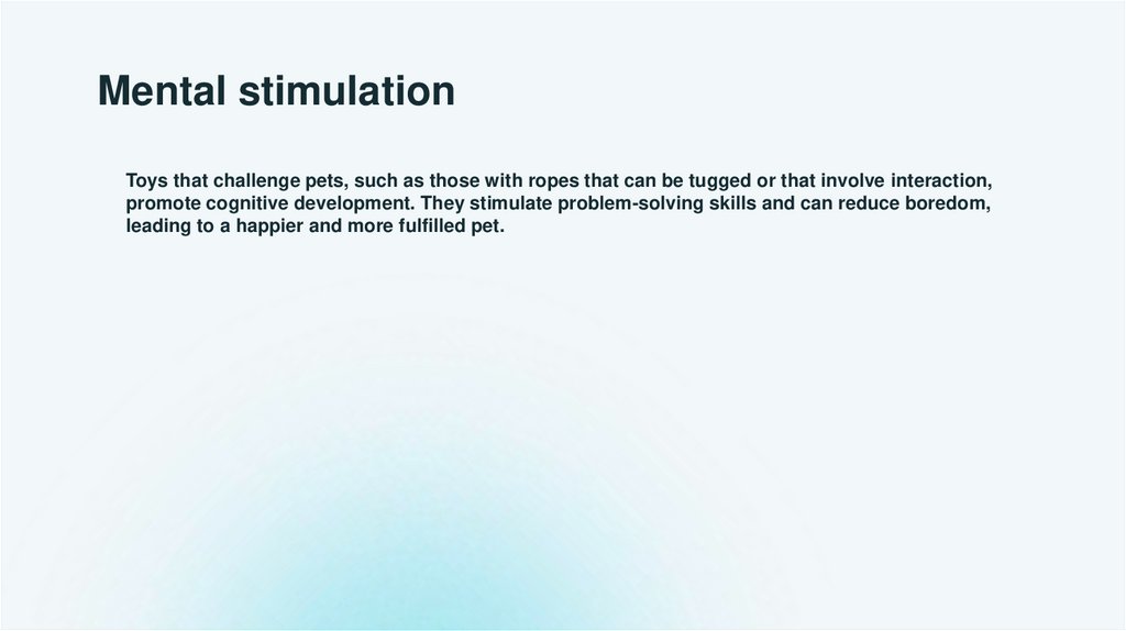 Mental stimulationToys that challenge pets, such as those with ropes that can be tugged or that involve interaction,