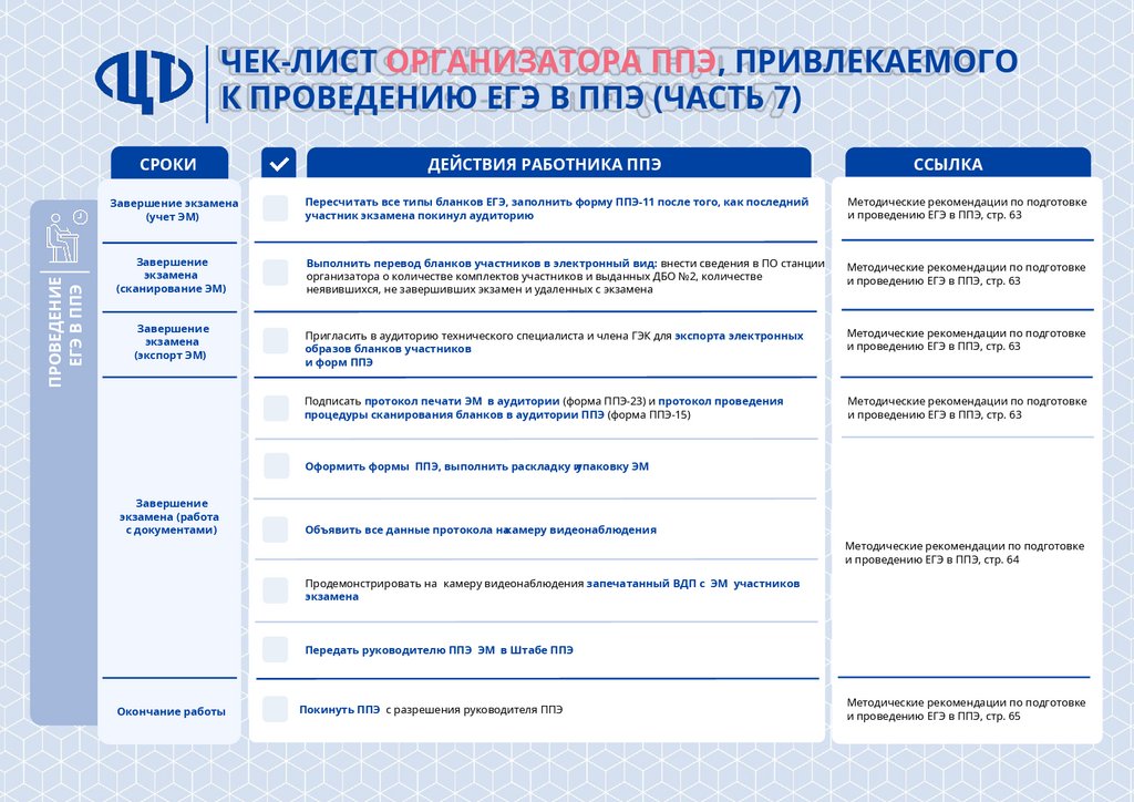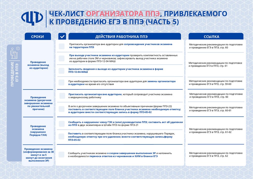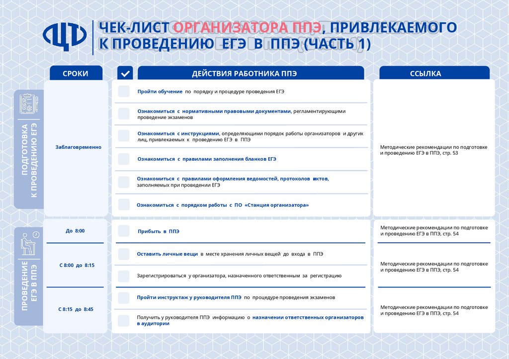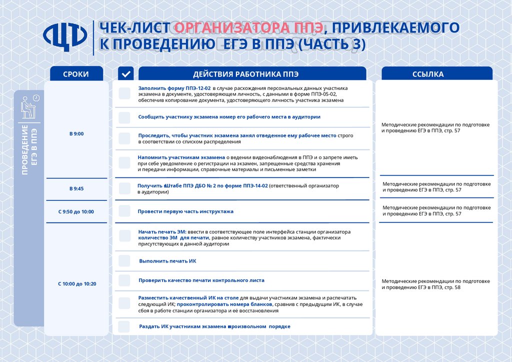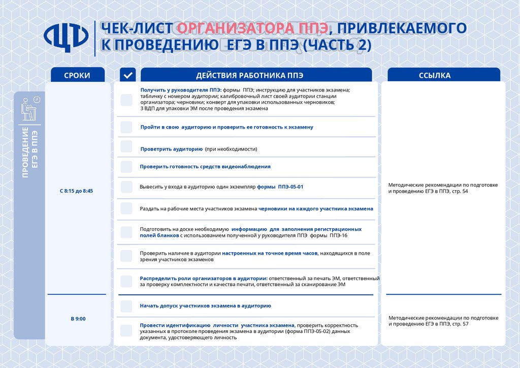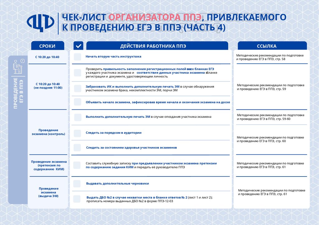 Чек-лист организатора ППЭ, привлекаемого к проведению ЕГЭ в ППЭ (часть 1)