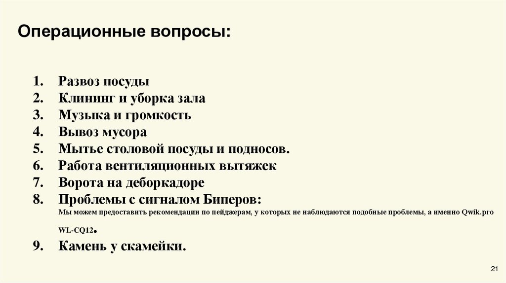 Операционные вопросы:1.