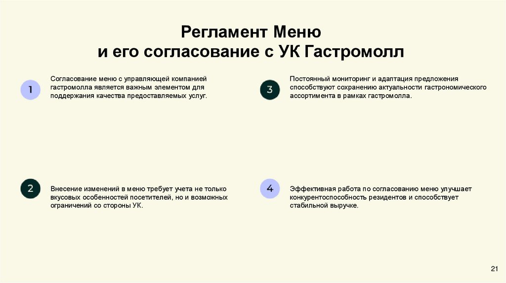 Регламент Менюи его согласование с УК Гастромолл