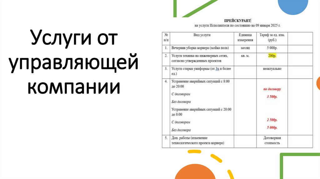 Услуги отуправляющей