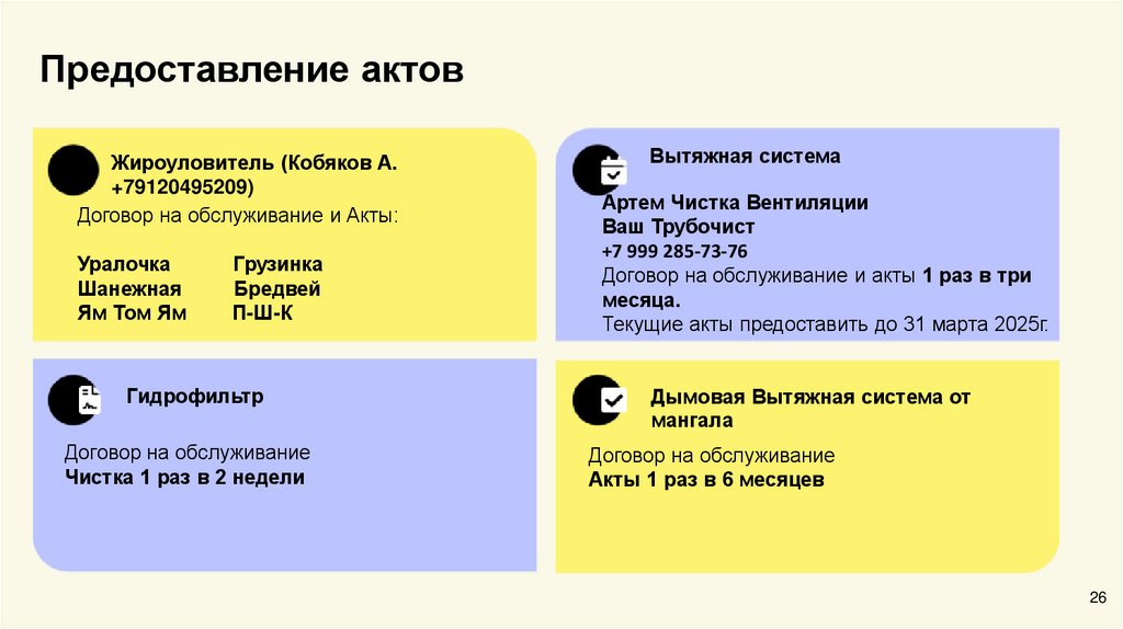 Договор на обслуживание и акты 1 раз в три