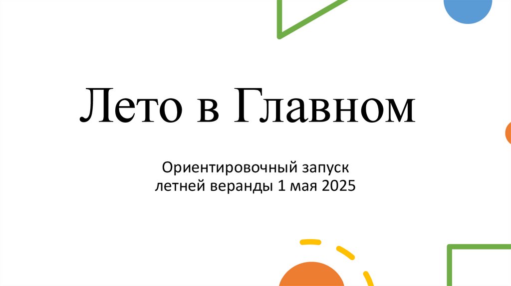 Лето в ГлавномОриентировочный запуск
