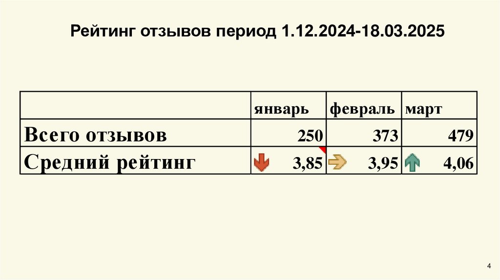 Рейтинг отзывов период 1.12.2024-18.03.20254