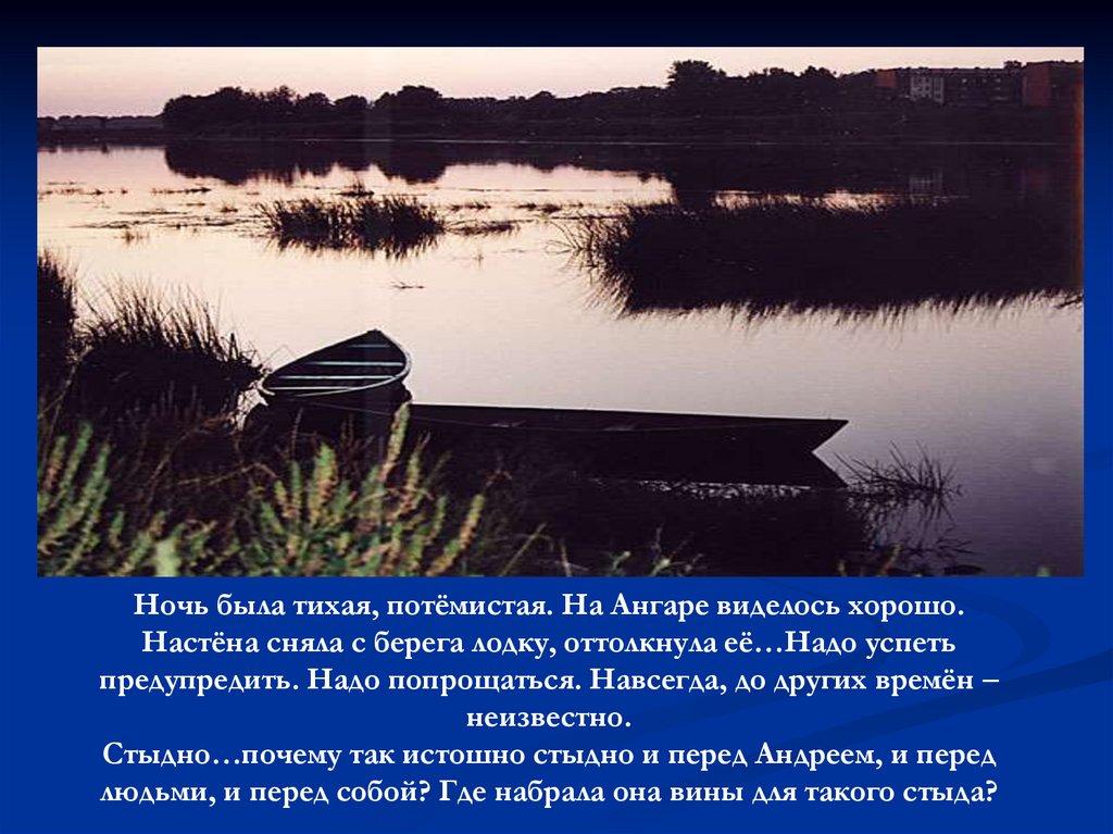 Что ребёнку передать в наследство?13. Ночь была тихая, потёмистая. На Ангаре виделось хорошо. Настёна сняла с берега лодку, оттолкнула её…Надо успеть предупредить.