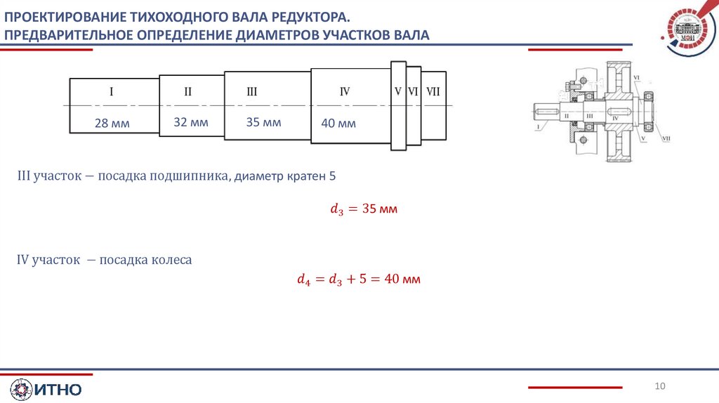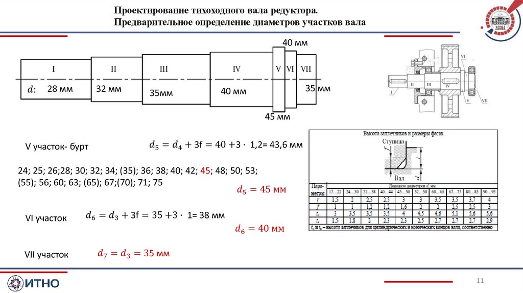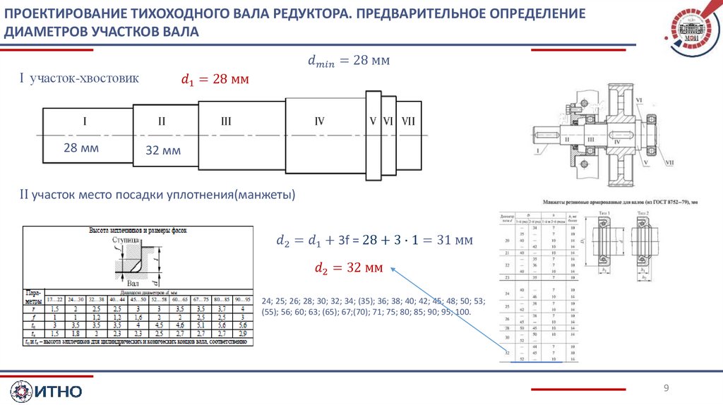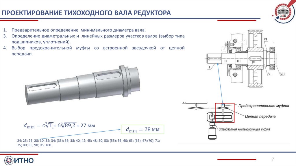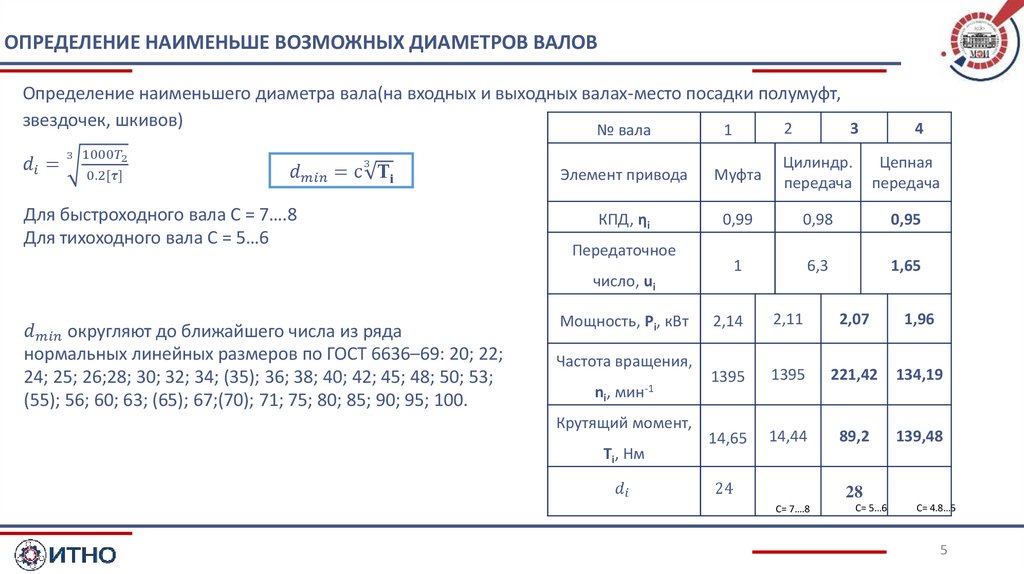 ОПРЕДЕЛЕНИЕ НАИМЕНЬШЕ ВОЗМОЖНЫХ ДИАМЕТРОВ ВАЛОВОпределение наименьшего диаметра вала(на входных и выходных валах-место посадки полумуфт,