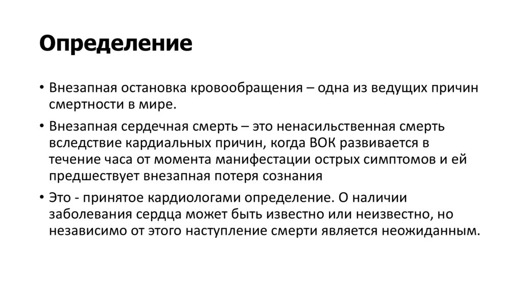 • Внезапная сердечная смерть – это ненасильственная смерть