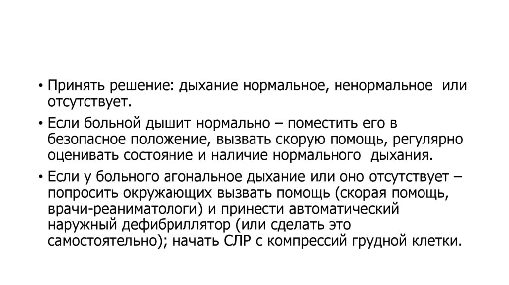 • Принять решение: дыхание нормальное, ненормальное илиотсутствует.