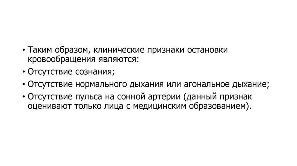 • Таким образом, клинические признаки остановкикровообращения являются: