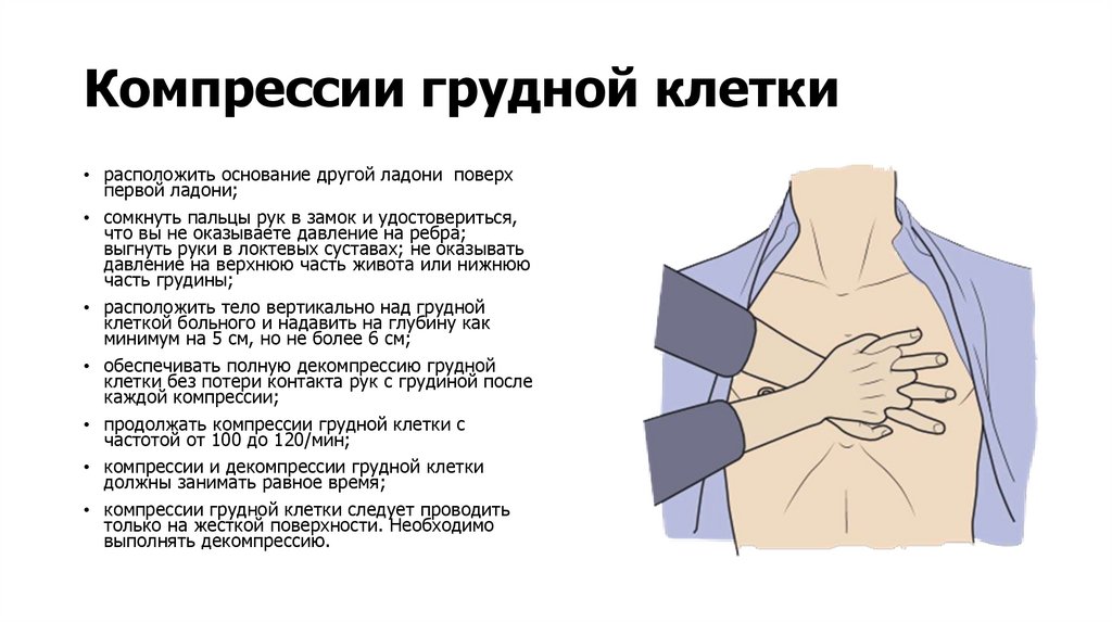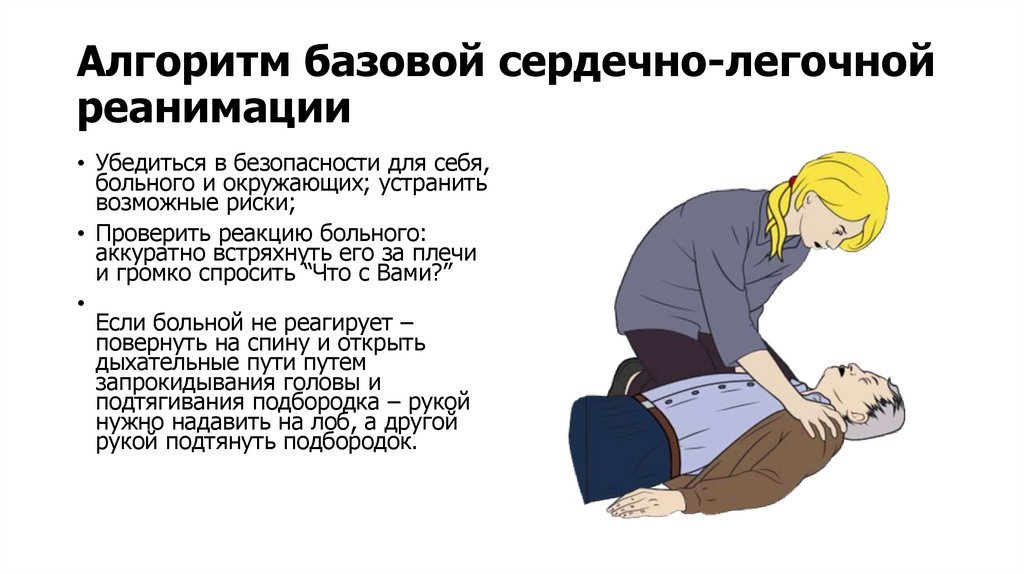 самостоятельно); начать СЛР с компрессий грудной клетки.