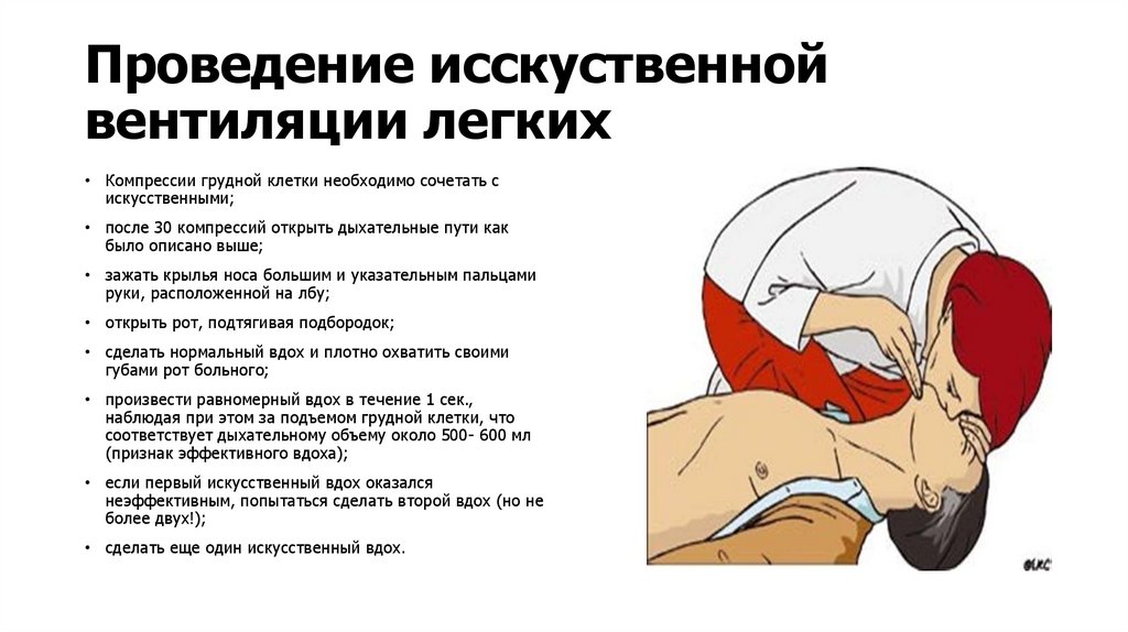 • Компрессии грудной клетки необходимо сочетать сискусственными;