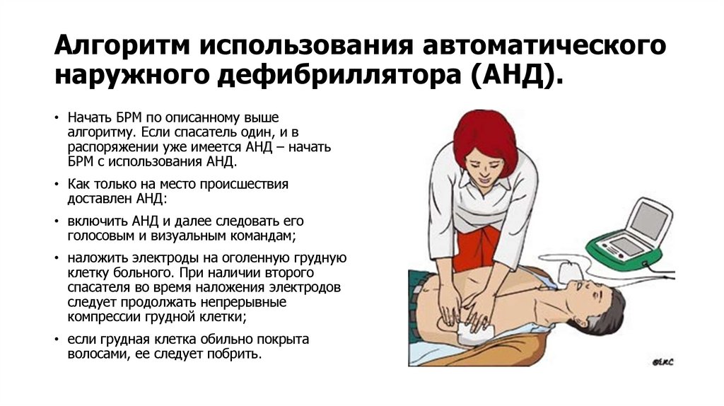 17. Алгоритм использования автоматического наружного дефибриллятора (АНД).