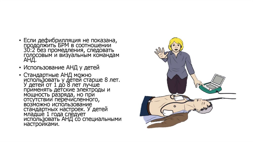 • Если дефибрилляция не показана,продолжить БРМ в соотношении